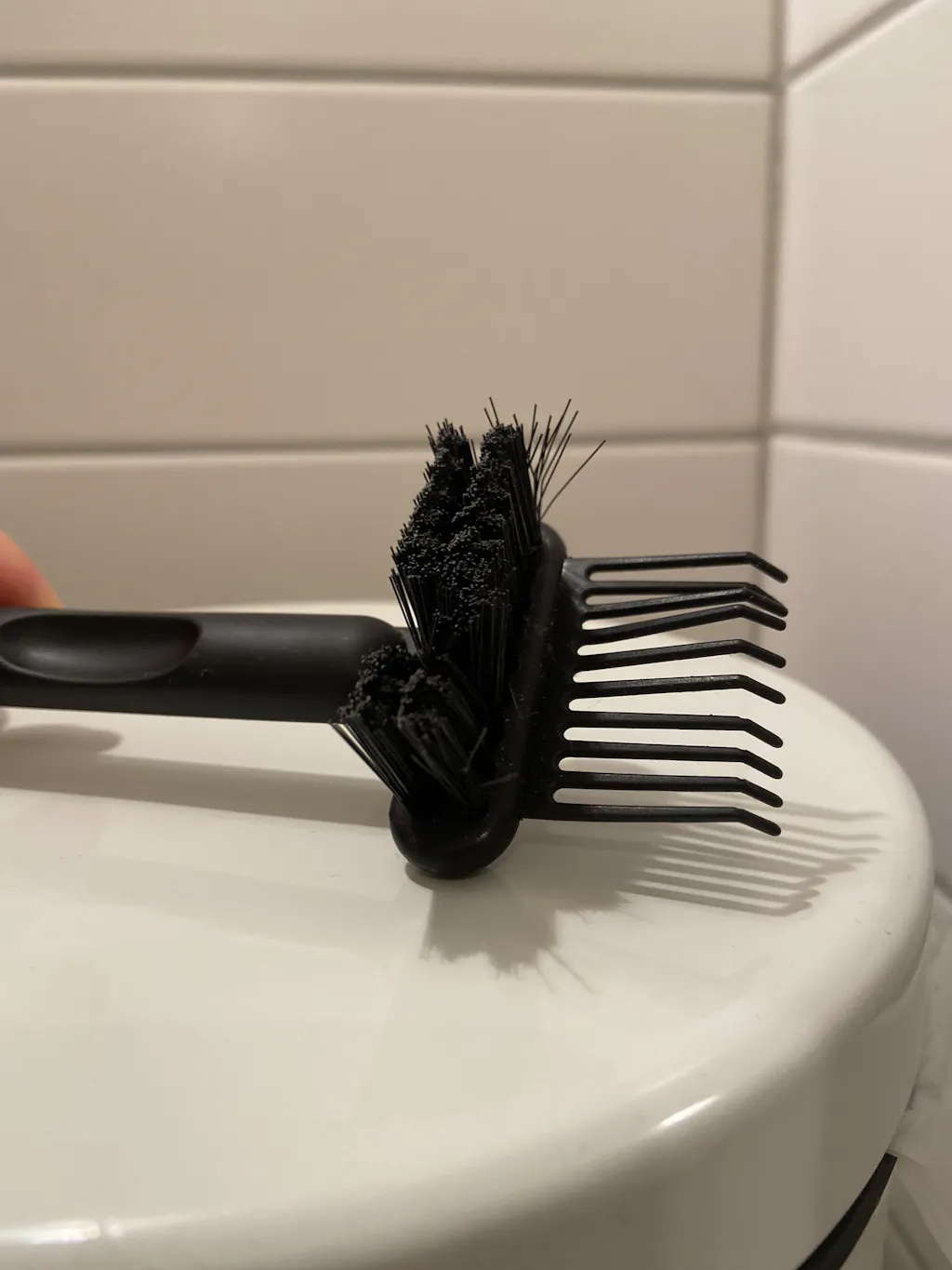 Use the spiked side to clean the brush of hairs. - Clean the surface
