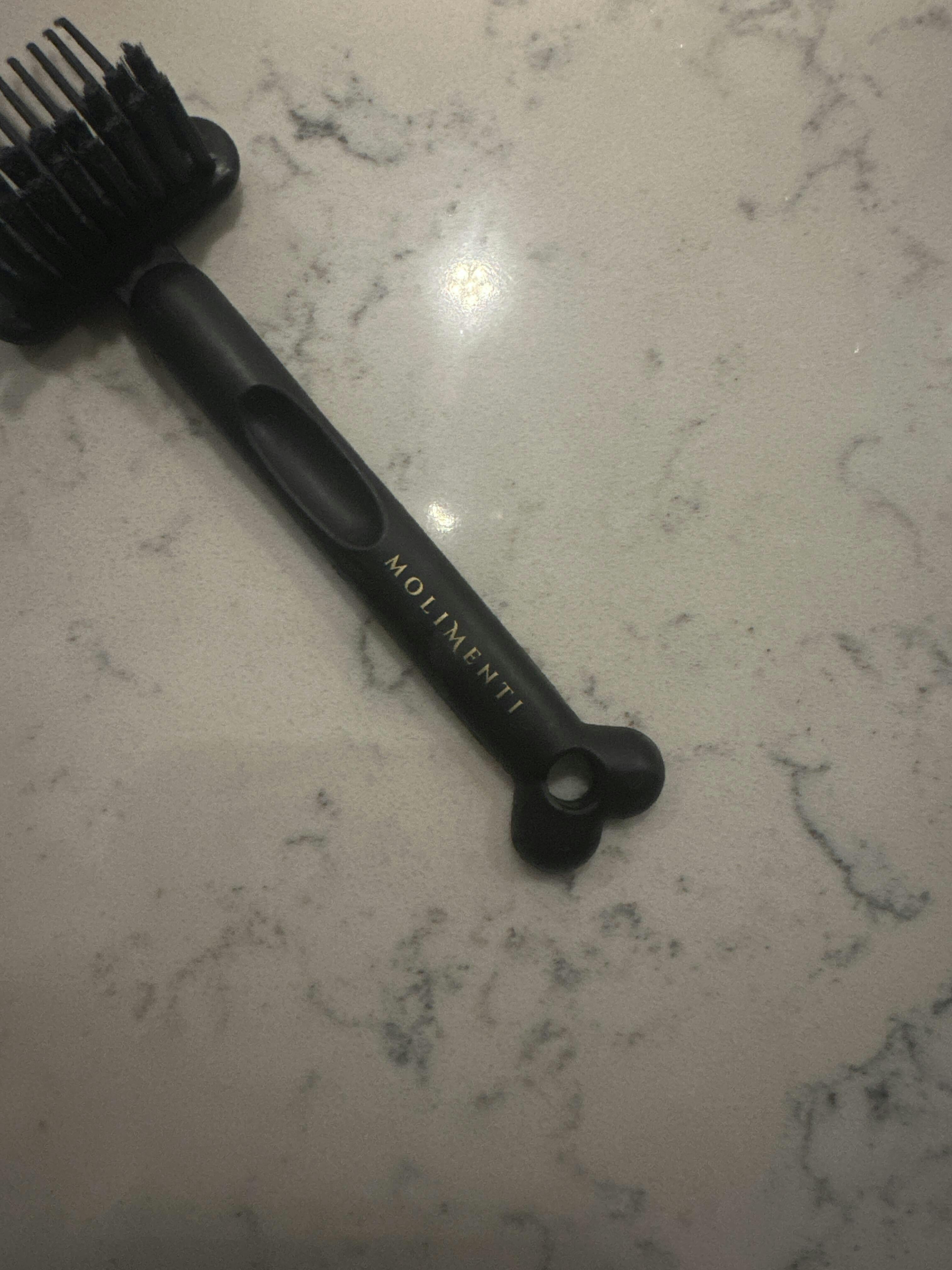– En sida med mjuka, formbara piggar som rensar borsten på hår